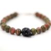 Joli bracelet pour homme, orné d’une perle de cristal Swarovski noire en forme de tête de mort et de pierres gemmes unakite.