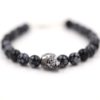 Bracelet homme – Tête de mort chromée et obsidienne – ARGENT 925