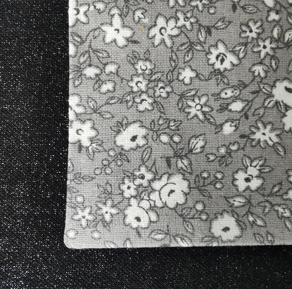 Tissu coton fleurs blanches sur fond gris.