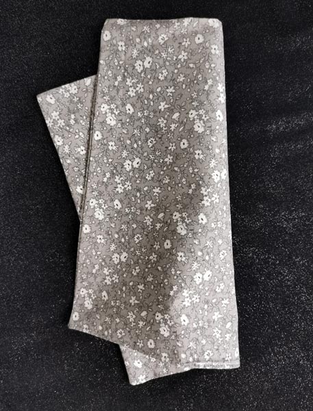Je vous propose cette pochette costume homme, une pièce cousue main dans mon atelier avec le plus grand soin. Son tissu en coton gris, imprimé de petites fleurs blanches dans un esprit Liberty, en fait un accessoire à la fois chic, discret et plein de fraîcheur.