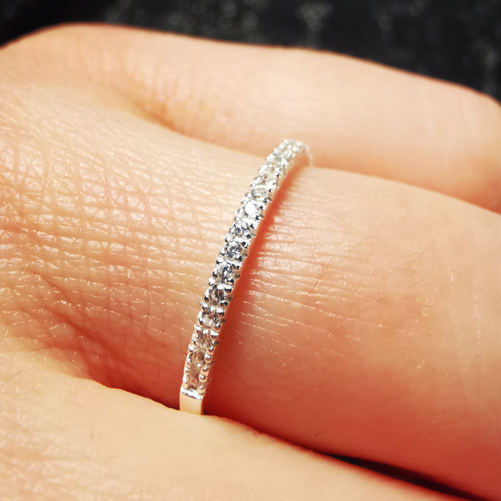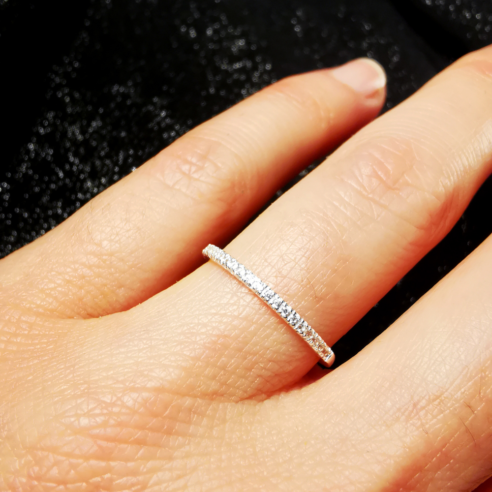Symbole d’un lien précieux, la Bague Promesse en argent 925 incarne la délicatesse des sentiments sincères. Son anneau fin, orné aux deux tiers de petits zircons carrés, capte la lumière avec élégance sans jamais voler la vedette à l’intention qu’elle porte : celle d’un attachement pur, discret, mais profond.