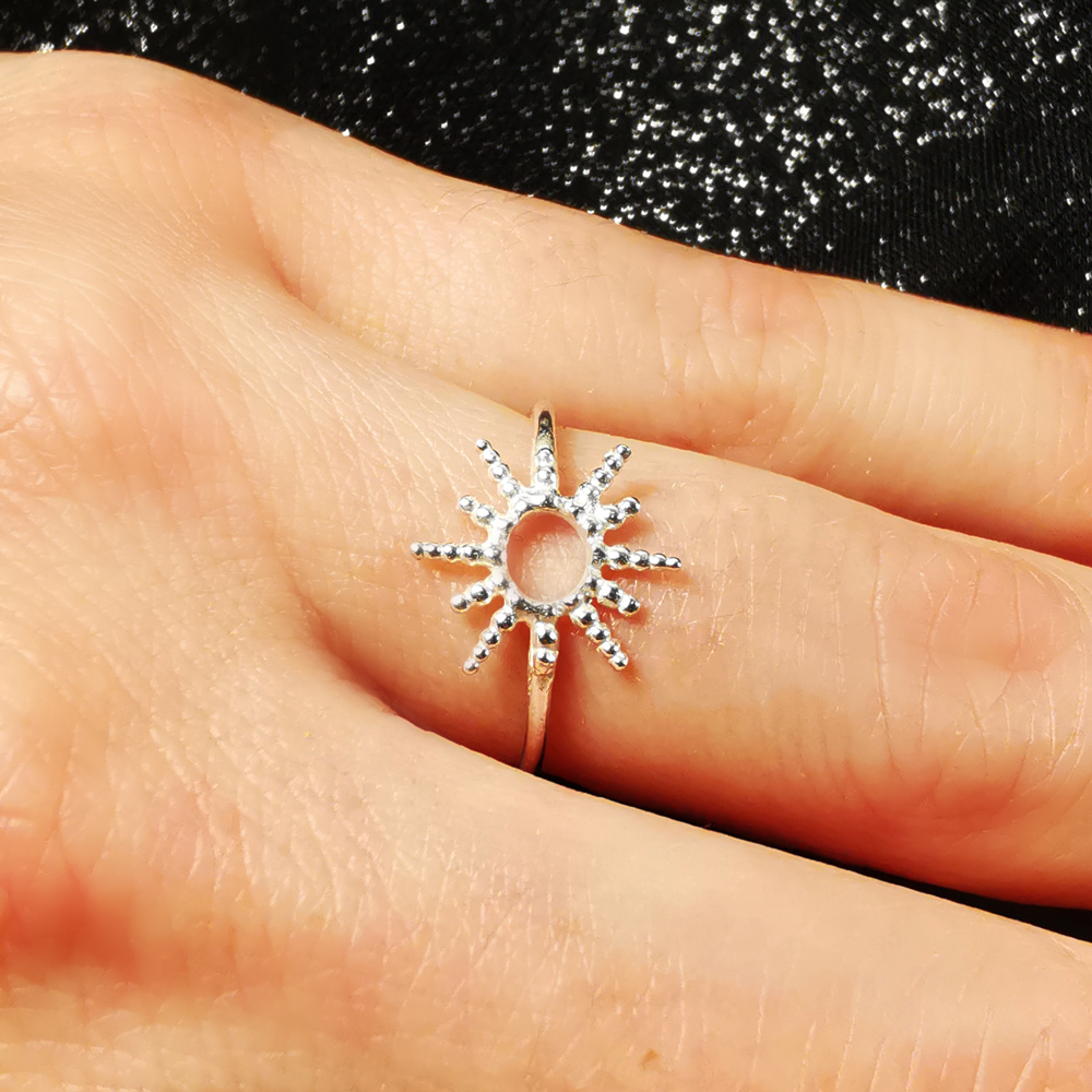 Offrez-vous un bijou lumineux et symbolique avec cette bague femme en argent 925/1000, taille 14. Son design fin et ajouré représente un soleil stylisé : un cercle central vide entouré de rayons comme en pointillés, alternant longueurs courtes et longues, pour une esthétique moderne et poétique.