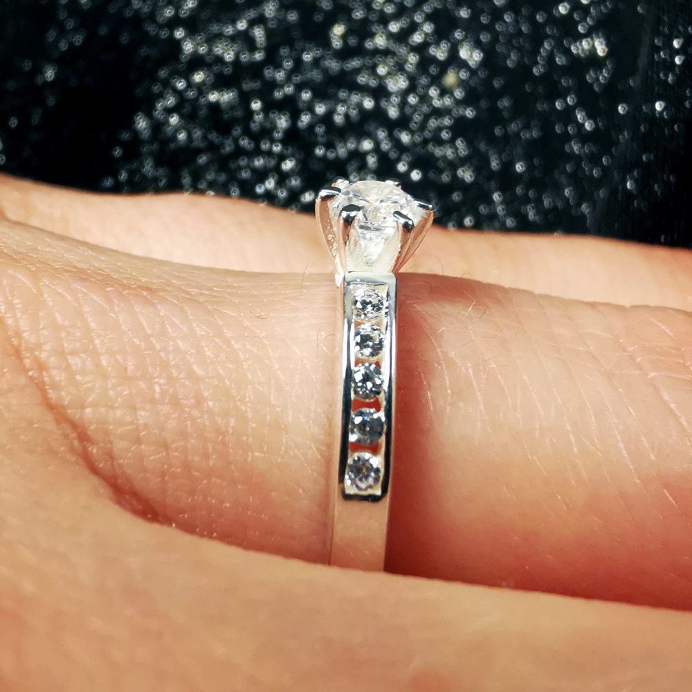 Réalisée en argent massif 925/1000, cette bague respecte les engagements de la marque : un bijou durable, fait pour résister au temps. Chaque détail – du serti précis aux pierres latérales – est travaillé avec exigence pour offrir un solitaire à la fois fin et solide, fidèle à l’esthétique de Same Bijoux.