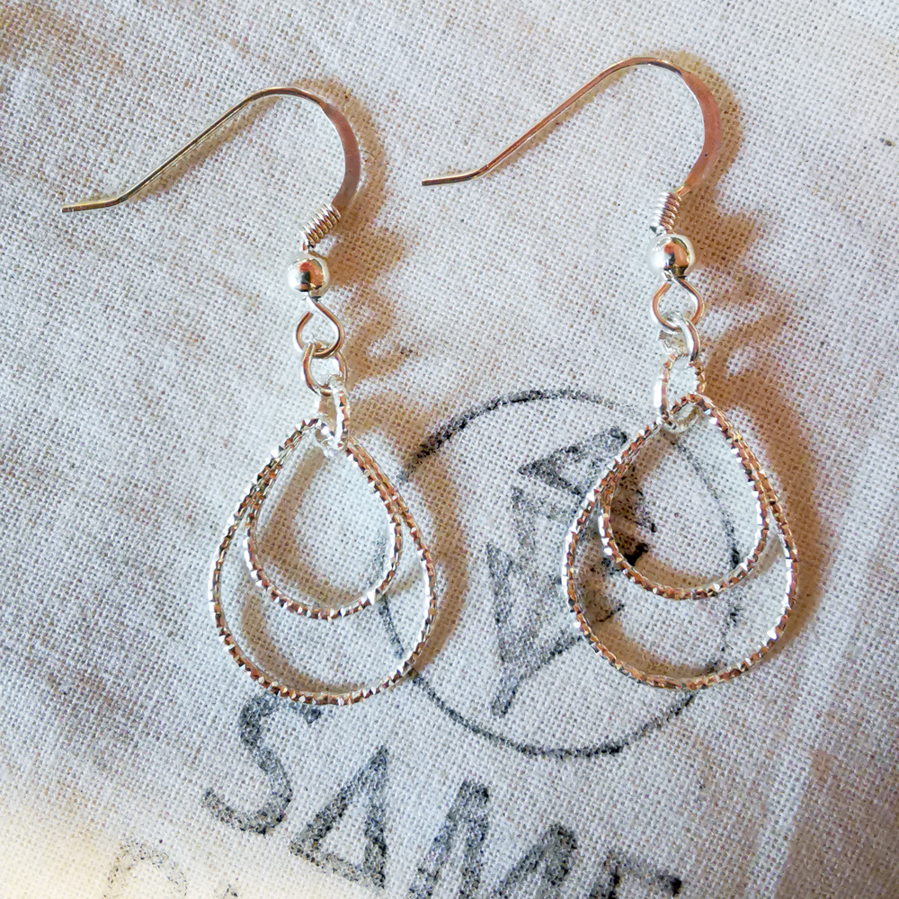 Nom : Boucles d’Oreilles Goutte Martelée – Argent 925