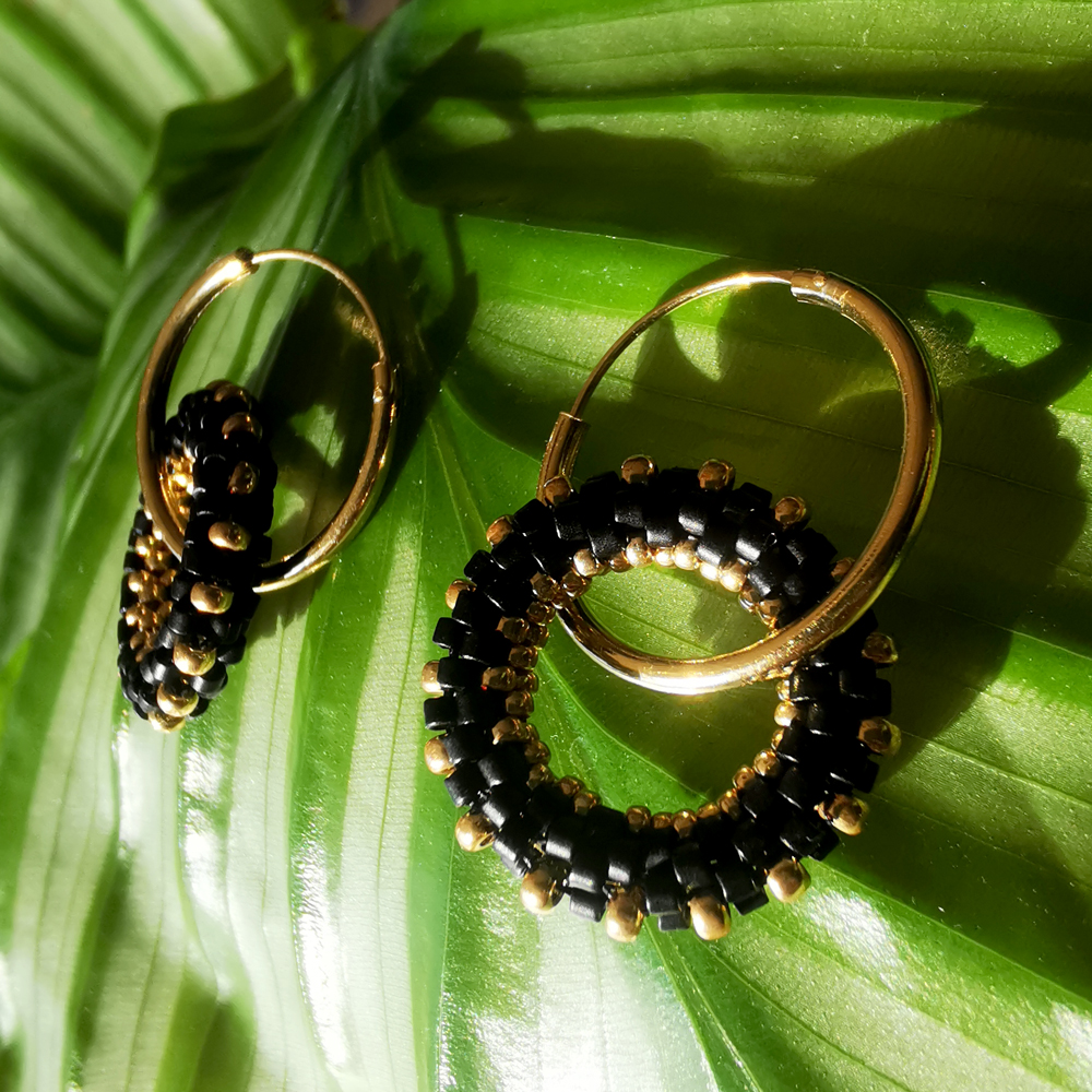 Technique : brick stitch – perles noires mates et dorées
