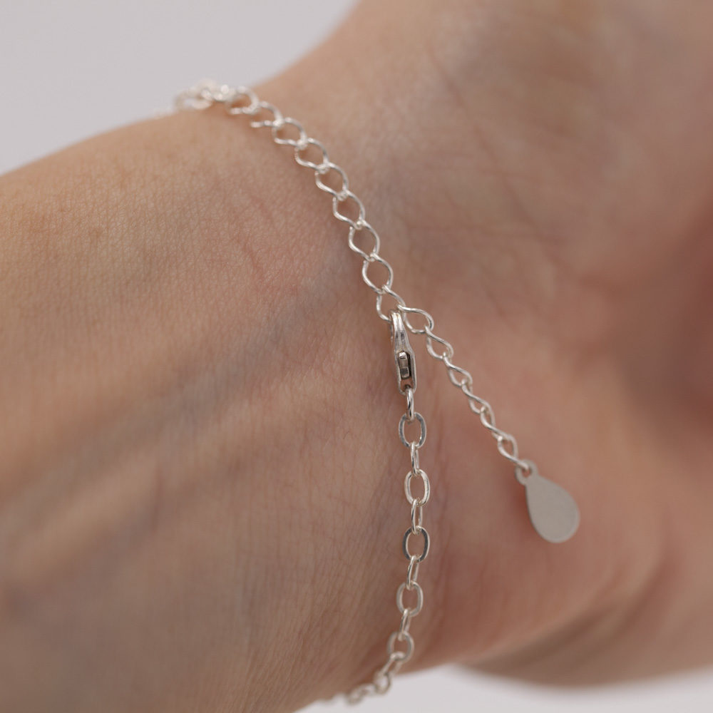 La taille s’ajuste à votre poignet avec sa chaînette d’extension de 5,5 cm.
